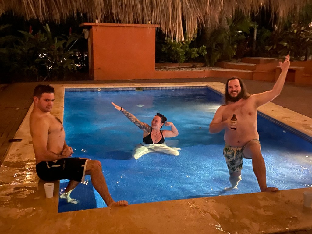 Our adventures in Mal Pais included swimming in the Pacific Ocean, watching our friend David catch some waves, eating even more delicious and exotic food, riding four-wheelers through the beaten paths, hiking an interesting (and slightly difficult) trail to a waterfall, and visiting a brewery. Our Airbnb was perfect with an awesome pool where we could lounge around and hear all the different birds and even howler monkeys.