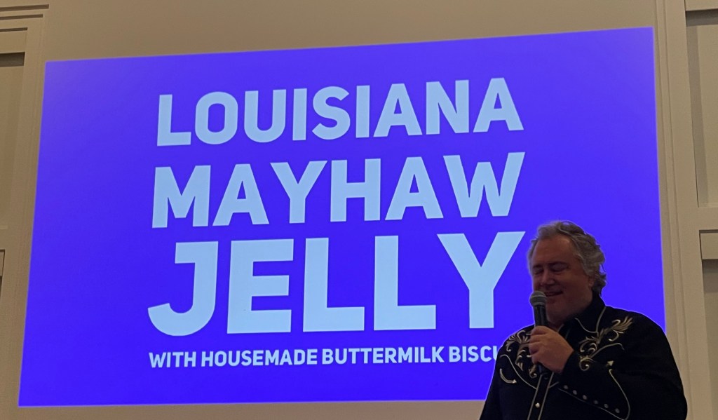 Like almost every other food we experienced during this dinner, we had never heard of “Mayhaw Jelly.” Bill Oakley started this course by explaining what Mayhaw berries were, what area they grow in, and how they are most commonly eaten – Mayhaw Jelly.