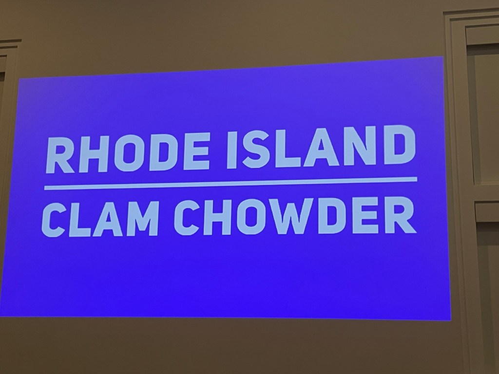 One of my favorite courses of the night, this part of the dinner began with going over the two famous clam chowders – New England Clam Chowder and Manhattan Clam Chowder. Apparently, there is a third, lesser-known version, Rhode Island Clam Chowder.